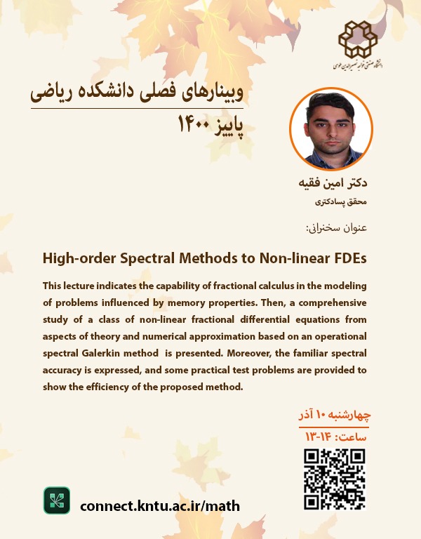 دانشکده ریاضی، نقش ریاضیات در گروههای دانش بنیان، دکتر رضا قنبری، چهارشنبه 17 آذر ساعت 13-14، connect.kntu.ac.ir/math