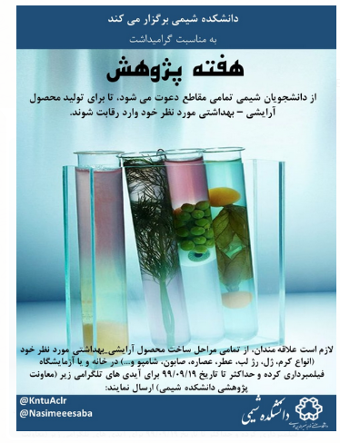 دانشکده شیمی به مناسبت گرامیداشت هفته پژوهش برگزار میکند: